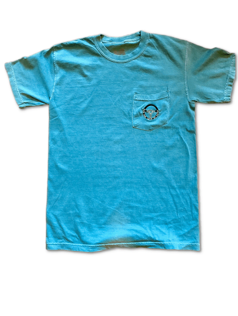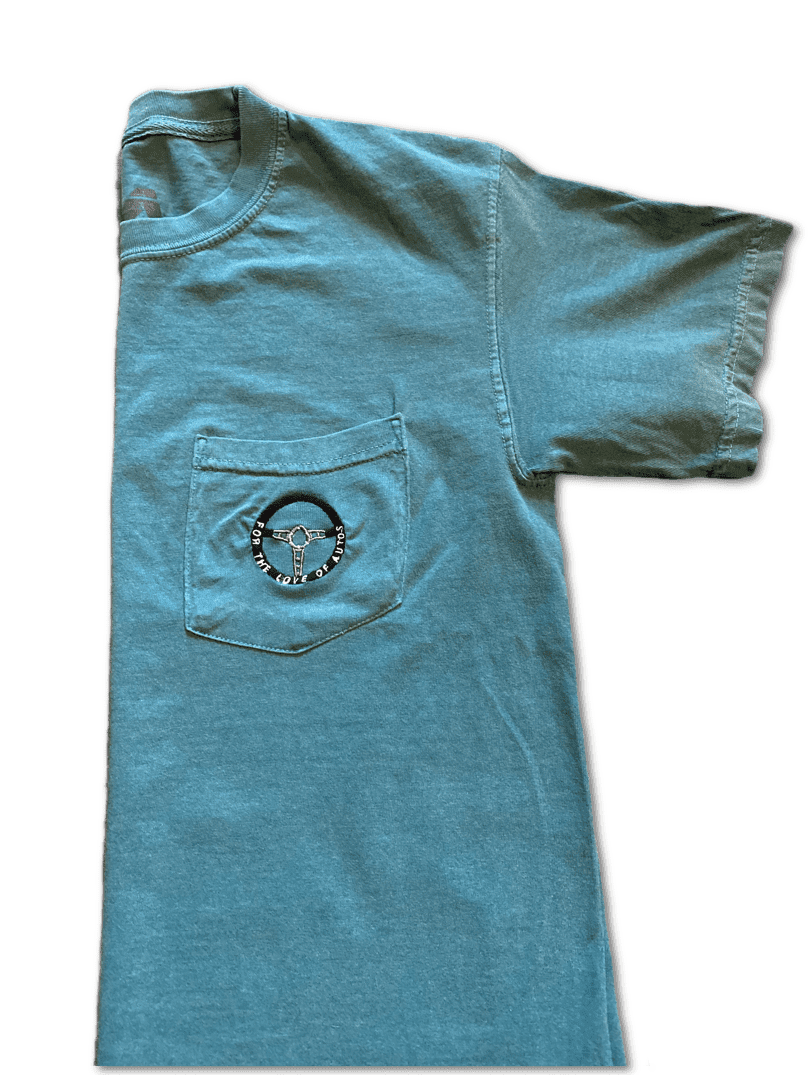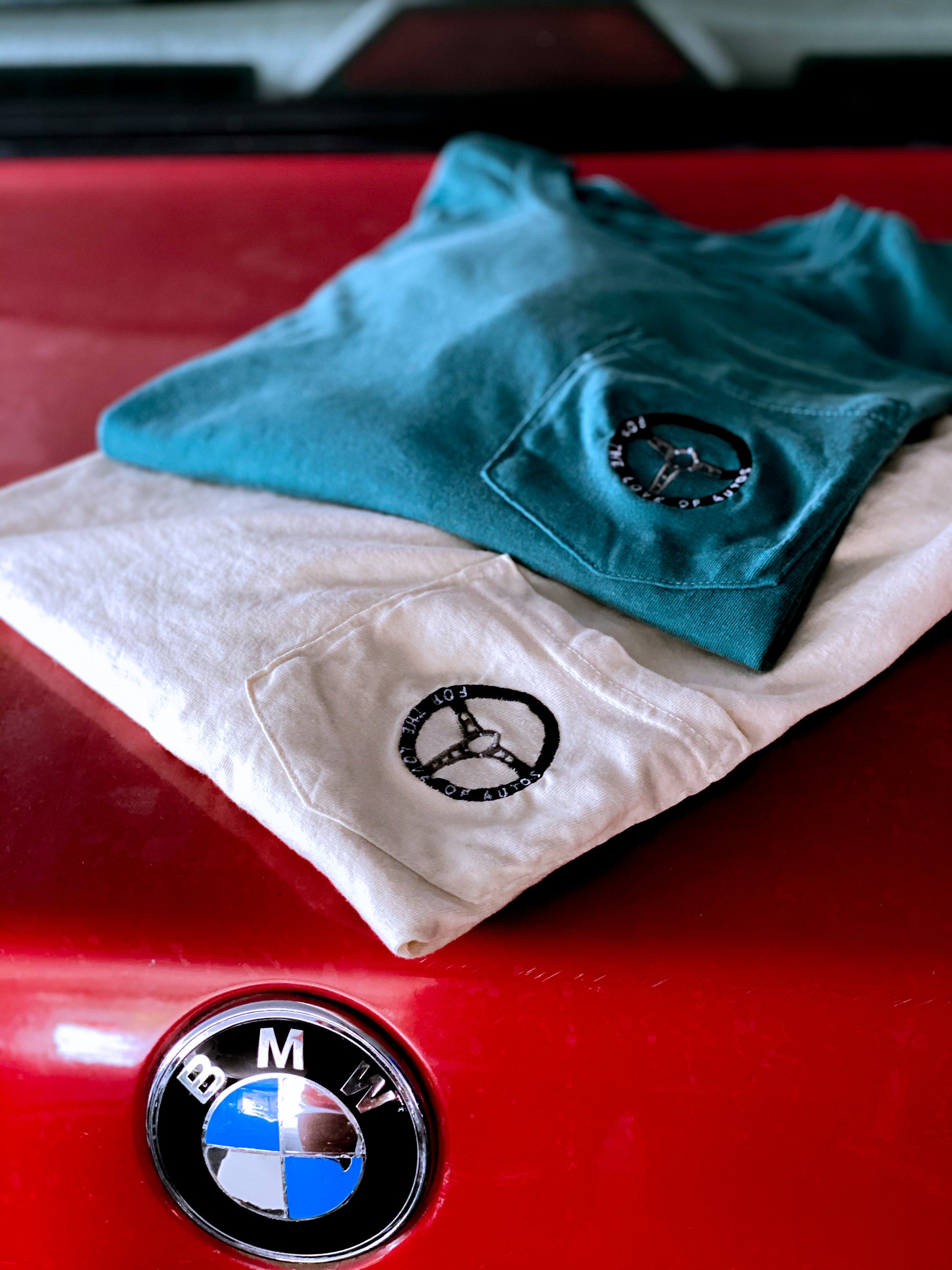 With an embroidered steering wheel on the breast pocket. This essential tee is an instant classic.
